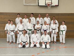 Am 04.03.2023 konnten wir zum wiederholten Male den Bundestrainer des Deutschen JKA-Karate-Bundes, Thomas Schulze aus Bremen, in der Selztalhalle in Stadecken-Elsheim begrüßen. Neben den Vereinsmitgliedern kamen auch zahlreiche externe Gäste, um Karate in höchster Präzision zu erleben und zu erfahren. Während in den ersten Trainingseinheiten das Erlernen und Üben der Katas (Formen) im Vordergrund stand, wurde am Nachmittag das Ganze im Partnertraining zur Anwendung gebracht. Hierbei schaffte es Thomas Schulze immer wieder, die Teilnehmer*innen für neue Kombinationen zu begeistern und zu persönlichen Höchstleistungen anzuspornen. Besonders zu schätzen wussten die Teilnehmer*innen seine bodenständige und kameradschaftliche Art; von Star-Allüren war bei dem ehemaligen Vizeweltmeister keine Spur. Die Lehrgangsteilnehmer*innen waren sich einig: Hoffentlich kommt der Nationalcoach bald wieder zu uns nach Stadecken-Elsheim.