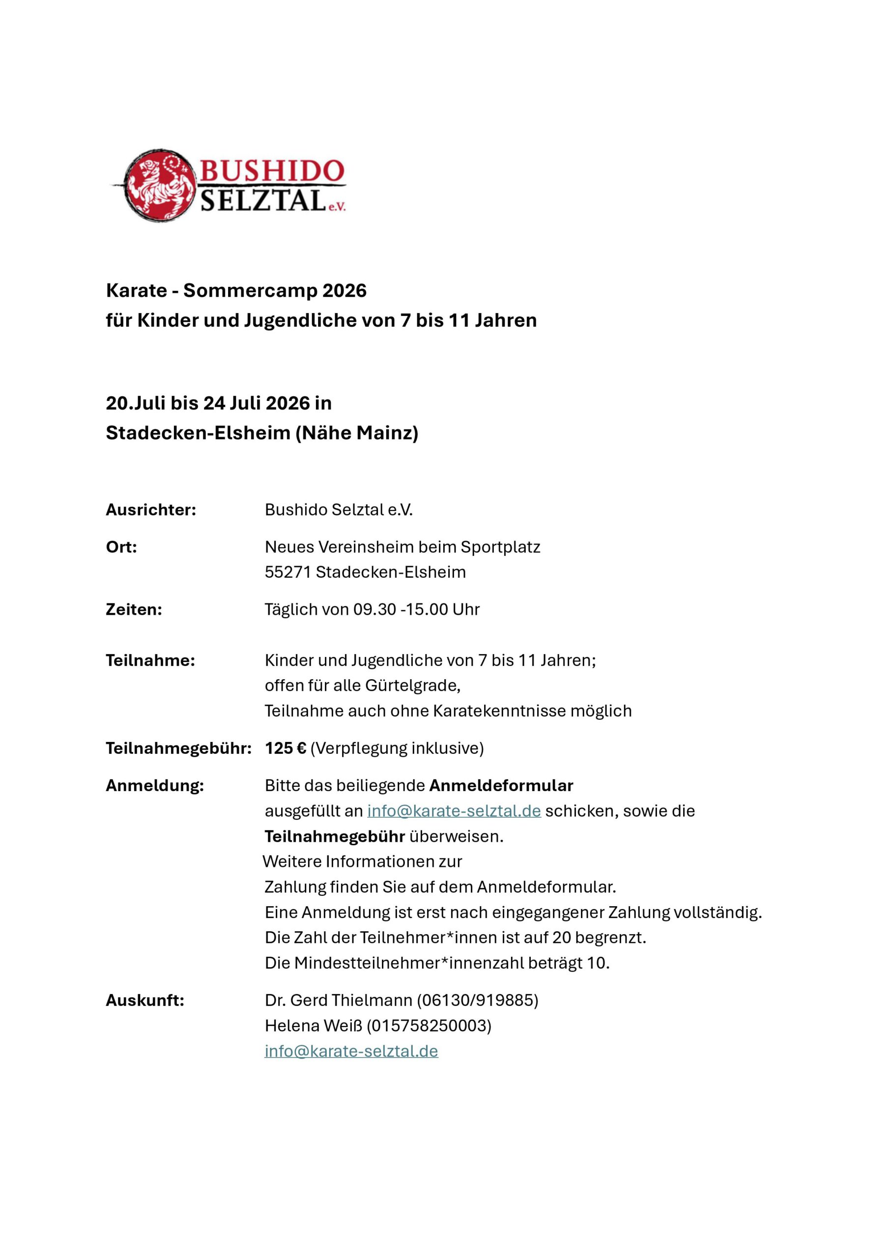 Herzlich willkommen auf der Homepage des Bushido Selztal e.V.!